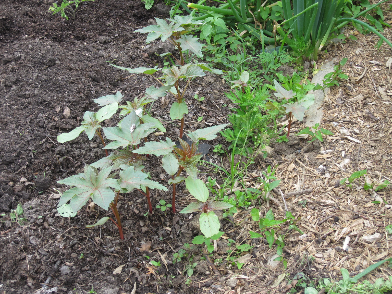 Even the sunflower seeds I planted have sprouted and look healthy. I’m hoping for a border of one to two feet tall sunflowers. After a lifetime of gardening, I’m growing corn for the first time. I was glad to see its willowy first leaves, like wide blades of grass, happily growing. I planted a second batch on Sunday so it doesn’t all get ripe at the same time. (I’ll plant a third wave in a week or so.) Winter squash, enough to overrun the whole garden if I’m not careful, is up. I, of course, planted a little more. A line of cucumbers I planted on a whim, are also up. I added a few more seeds of this, too, filling in for a few that’s didn’t sprout. So thrilling to see everything doing well. I watered Smith’s residents deeply and mulched some plants I hadn’t before. Mulching is one strategy for keeping moisture in the ground longer, allowing me to “neglect” the garden a bit. I excavated five volunteer marigolds and three castor bean stalks to plant back home in the Lorelei where we will appreciate them more.