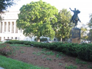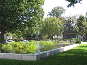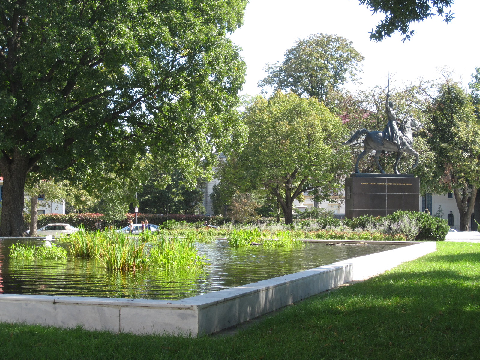 Look: I like the statue, I like the pedestal, I even like the odd polygon pond next to it. Taken as a whole, however, this little park (called Triangle Park on maps, it should be called Bolivar Park except he already has way too many things named after him in the Western Hemisphere, plus the park isn’t worthy of his name) is not attractive. It doesn’t live up to almost all the other landscaping and green spaces on Virginia. The plantings are untended, neglected really, except for some fresh mulch thrown on in spring. The grass gets cut sporadically. Marble paving stones around the statue are cracked and broken. Ironic this parklet is the Interior Department’s front yard. An agency responsible for, among other things, the care of our national parks and resources, should make this one look better.