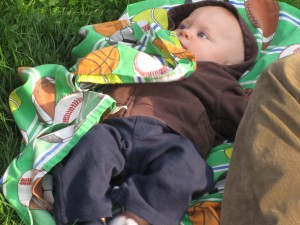 My twenty-four hours in Brooklyn race by. I grab as much time with Rider as I can. I am amazed and delighted by how personable he has become. Gone is the sort of vacant infant look, replaced by the inquisitive eyes and ready smile of an almost five month old. At times, I can even get him to laugh, a musical chuckle that starts from his belly and rings sweetly throughout the room. All who hear it can’t help but laugh too.
